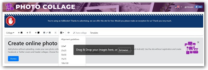 Это простой инструмент для создания коллажей: перемещаете мышкой несколько изображений в окно сервиса, выбираете способ коллажирования и сохраняете готовую картинку. В готовый коллаж можно добавить свой текст.